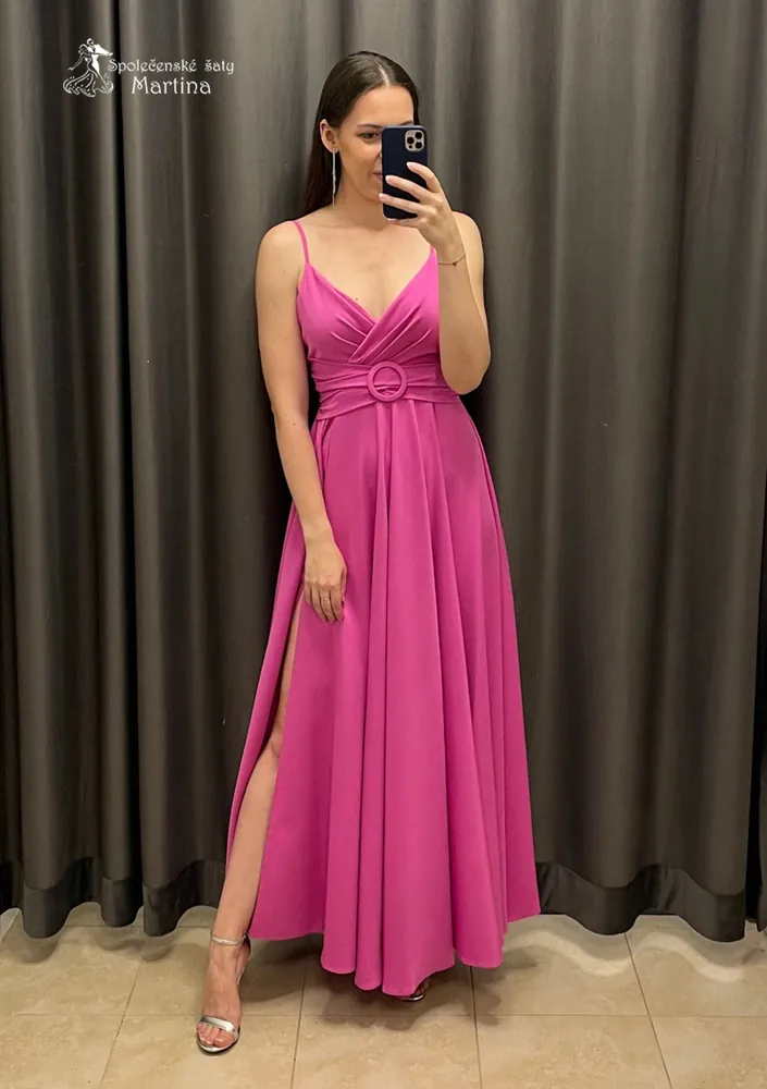 - Intenzivně růžové společenské šaty "Valencia" na tenká ramínka - vel. 40