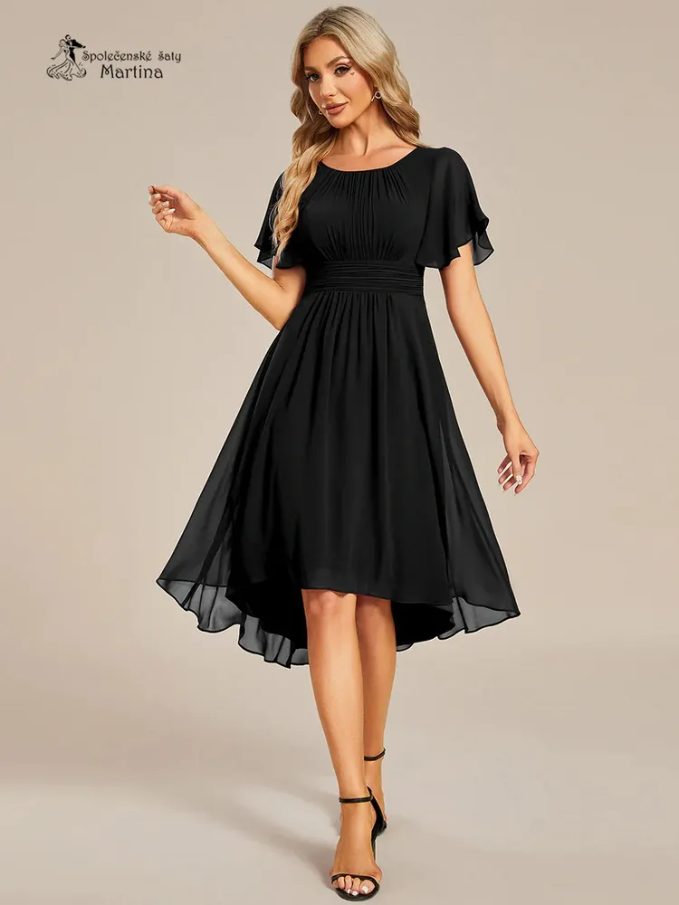 - Jednoduché černé šifonové šaty po kolena "Lola" s krátkým rukávem - vel. 36