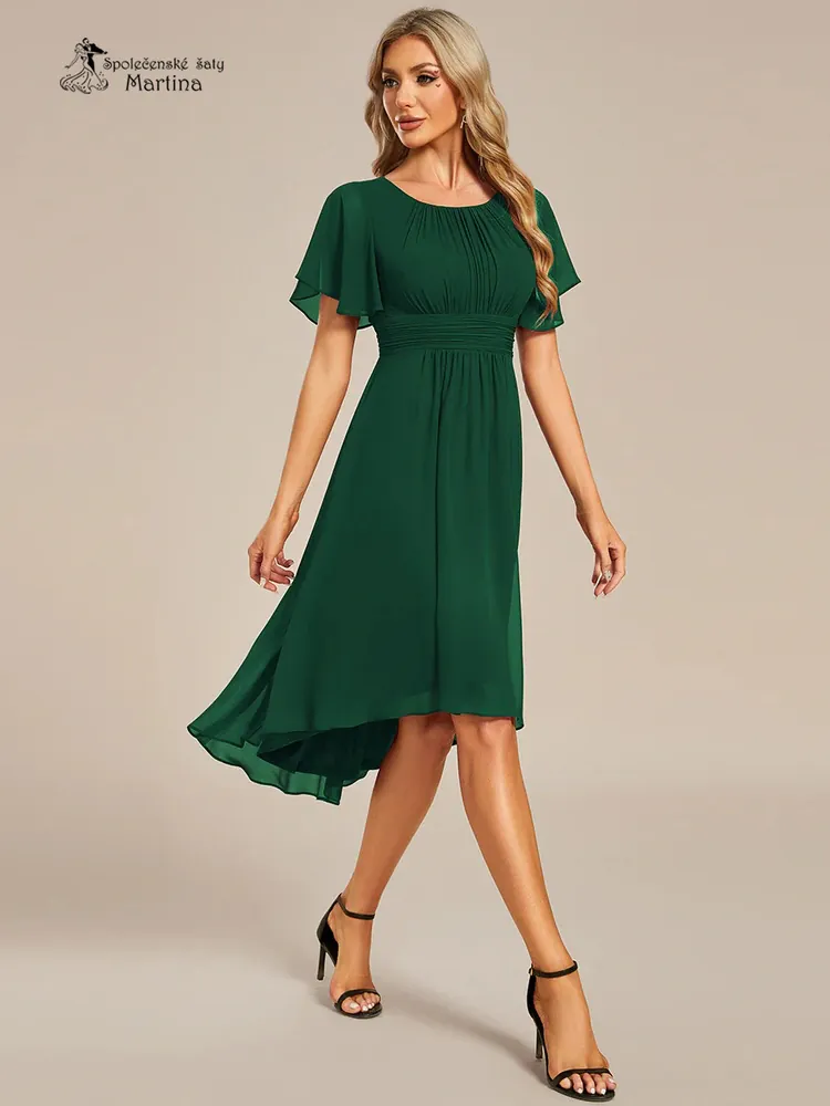 - Jednoduché lahvově zelené šifonové šaty po kolena "Lola" s krátkým rukávem