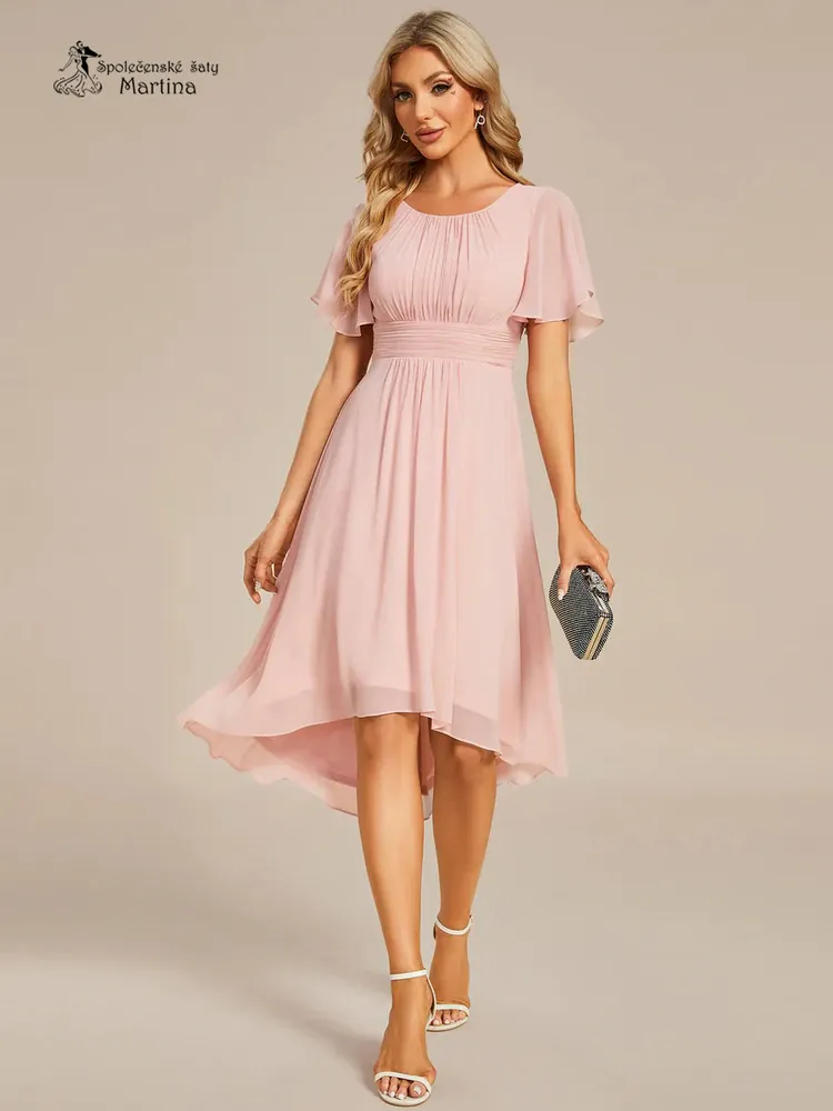 - Jednoduché růžové šifonové šaty po kolena "Lola" s krátkým rukávem