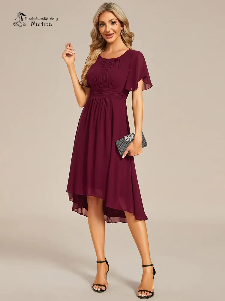 - Jednoduché vínové šifonové šaty po kolena "Lola" s krátkým rukávem