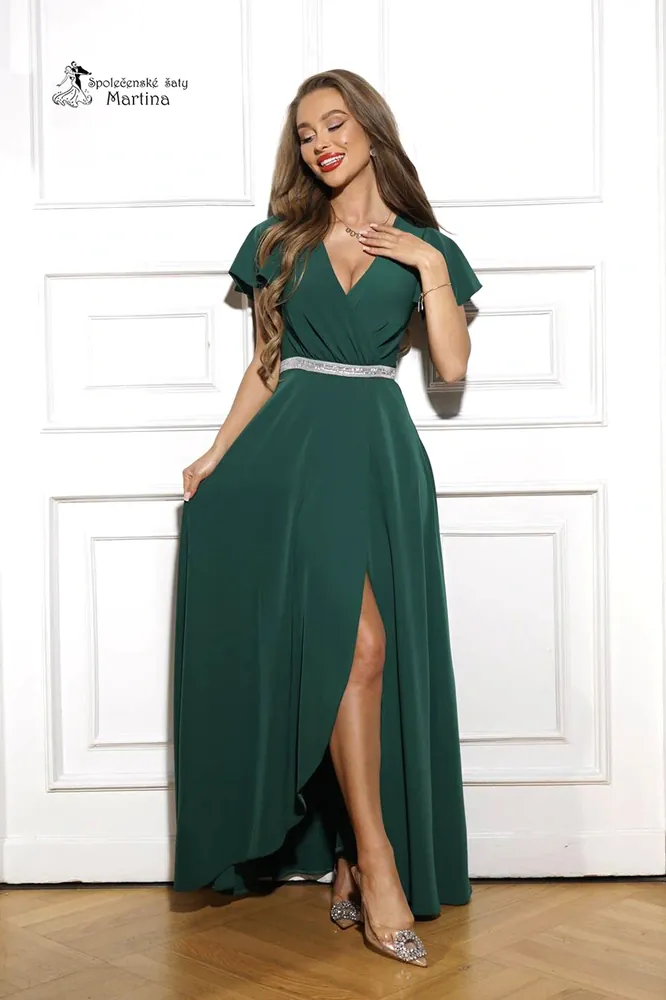 Lahvově zelené asymetrické společenské šaty "Zoja" - vel. 362 290 Kč/ ks1 893 Kč bez DPH