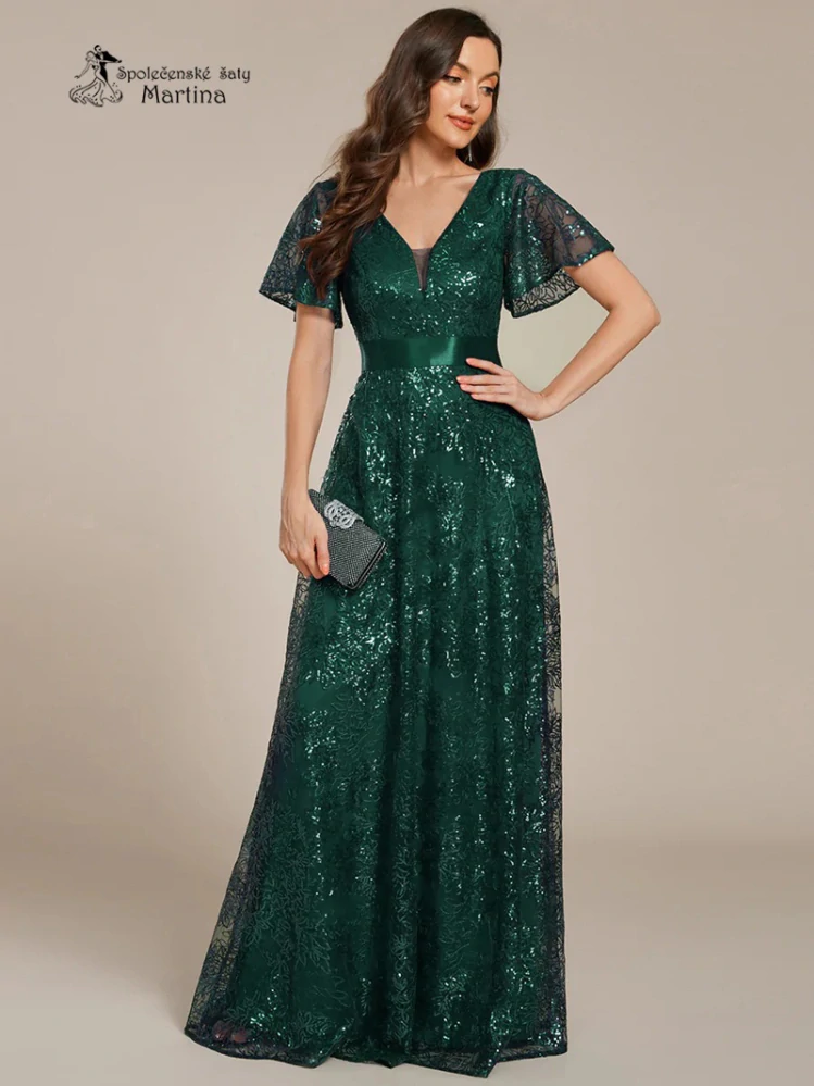 Lahvově zelené dlouhé večerní plesové šaty "Jami" s krátkým volným rukávem - vel. 462 940 Kč/ ks2 430 Kč bez DPH