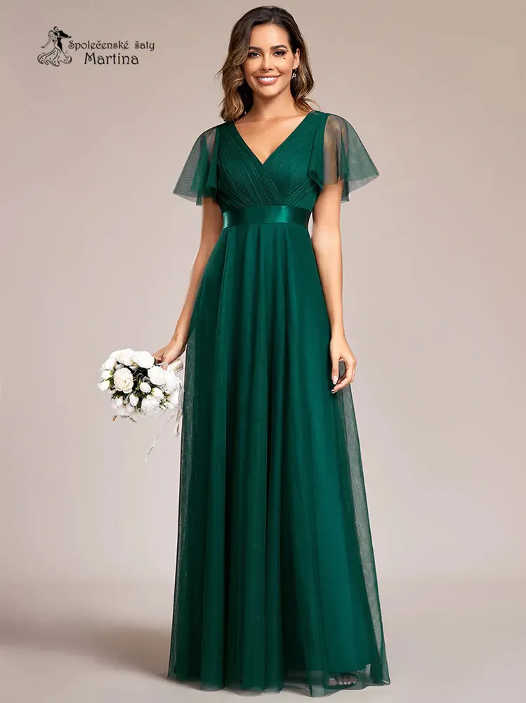 - Lahvově zelené tylové šaty s krátkým rukávkem “Broke”