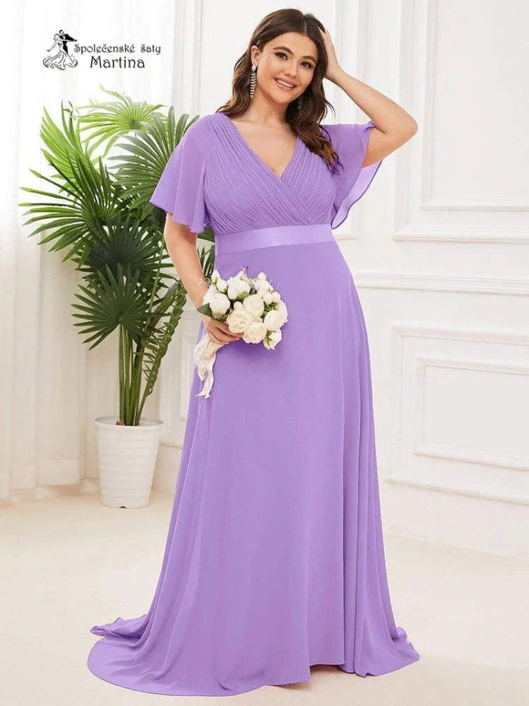 - Levandulové šifonové šaty "Camila XXL" antického střihu