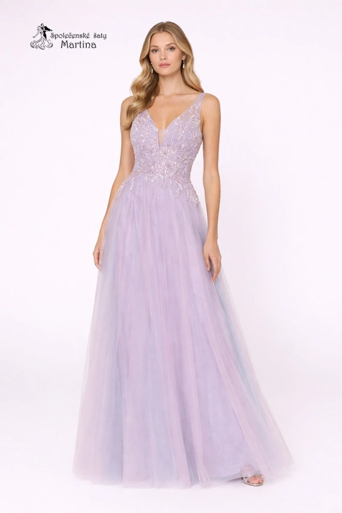 - Lila tylové společenské šaty "Inesa" s vyšívaným živůtkem