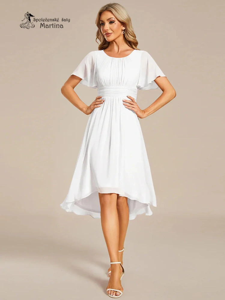 - Jednoduché bílé šifonové šaty po kolena "Lola" s krátkým rukávem