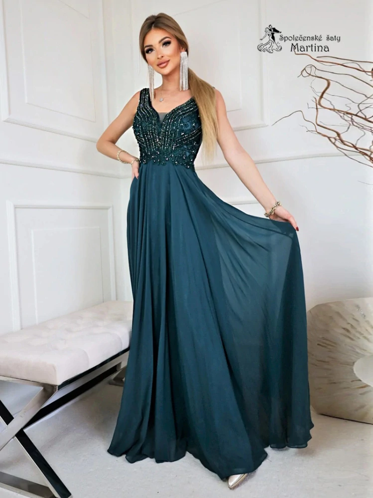Luxusní lahvově zelené šaty "Campari" se zdobeným živůtkem a kolovou sukní4 090 Kč/ ks3 380 Kč bez DPH