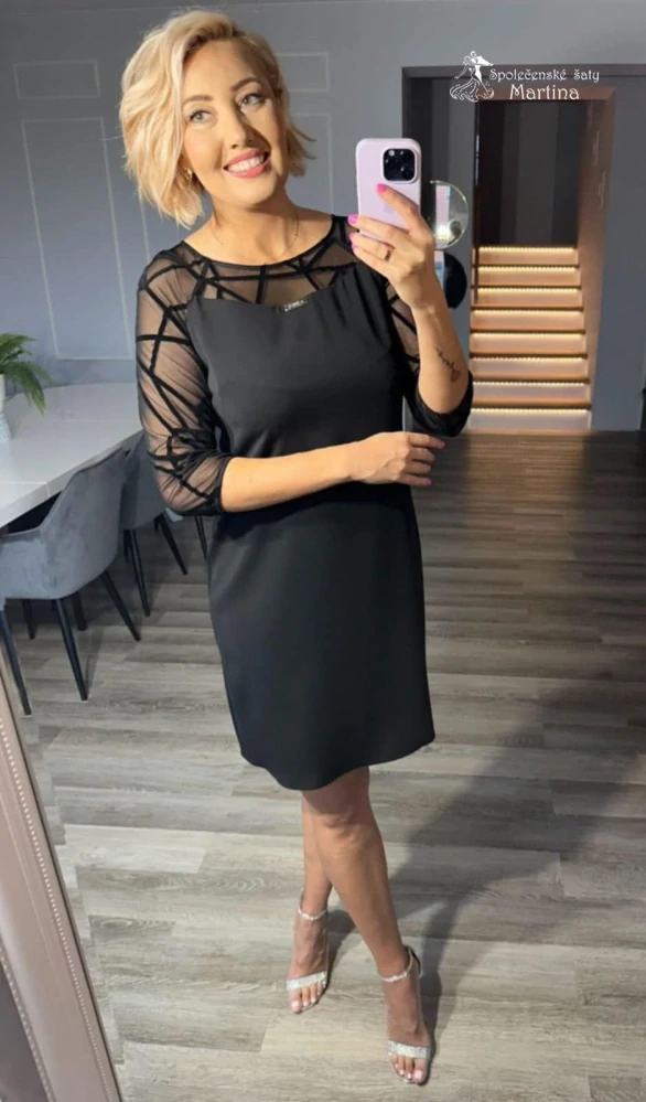 Malé černé společenské šaty "Lauren" s geometrickým vzorem na rukávech - vel. 442 190 Kč/ ks1 810 Kč bez DPH