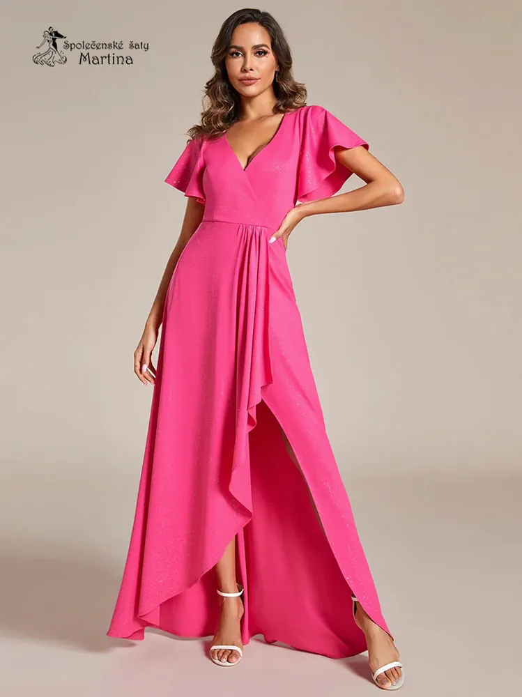- Růžové třpytivé šaty s asymetrickou sukní "Mallory"