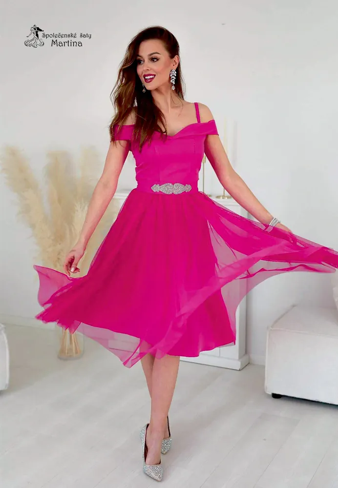 Midi fuchsiové společenské šaty "Daisy" se spadenými ramínky - vel. 422 290 Kč/ ks1 893 Kč bez DPH