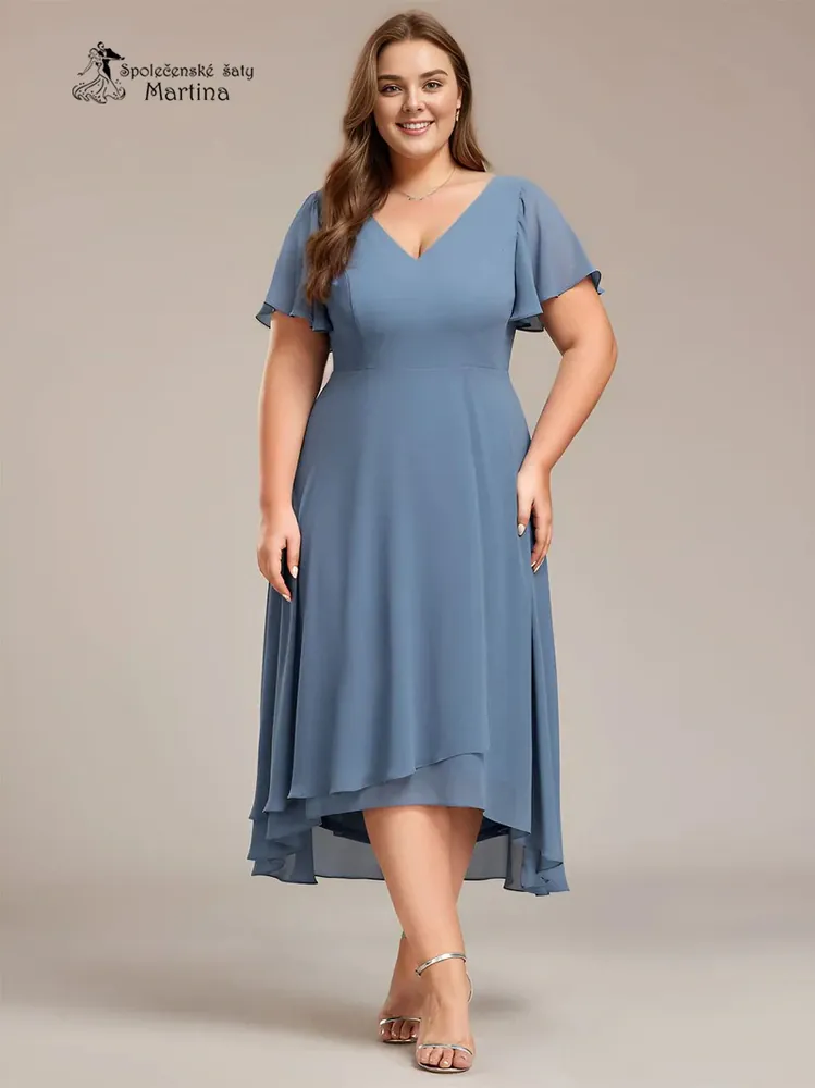- Midi staromodré XXL asymetrické šaty s volným rukávem "Maisie"