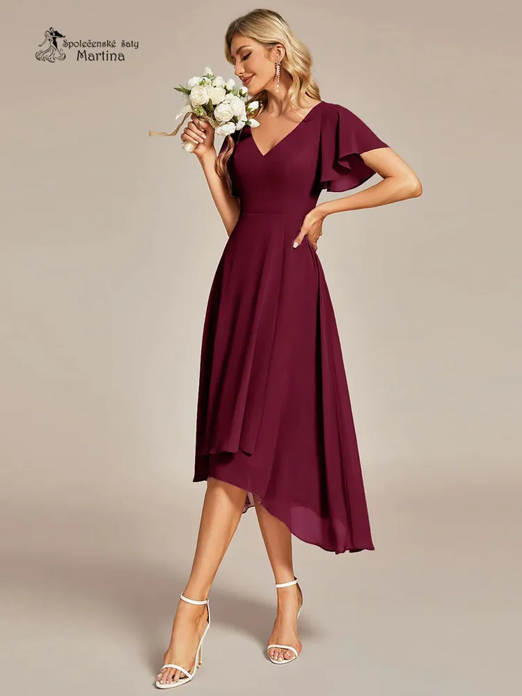 Midi vínové asymetrické šaty s volným rukávem "Maisie" - vel. 342 390 Kč/ ks1 975 Kč bez DPH