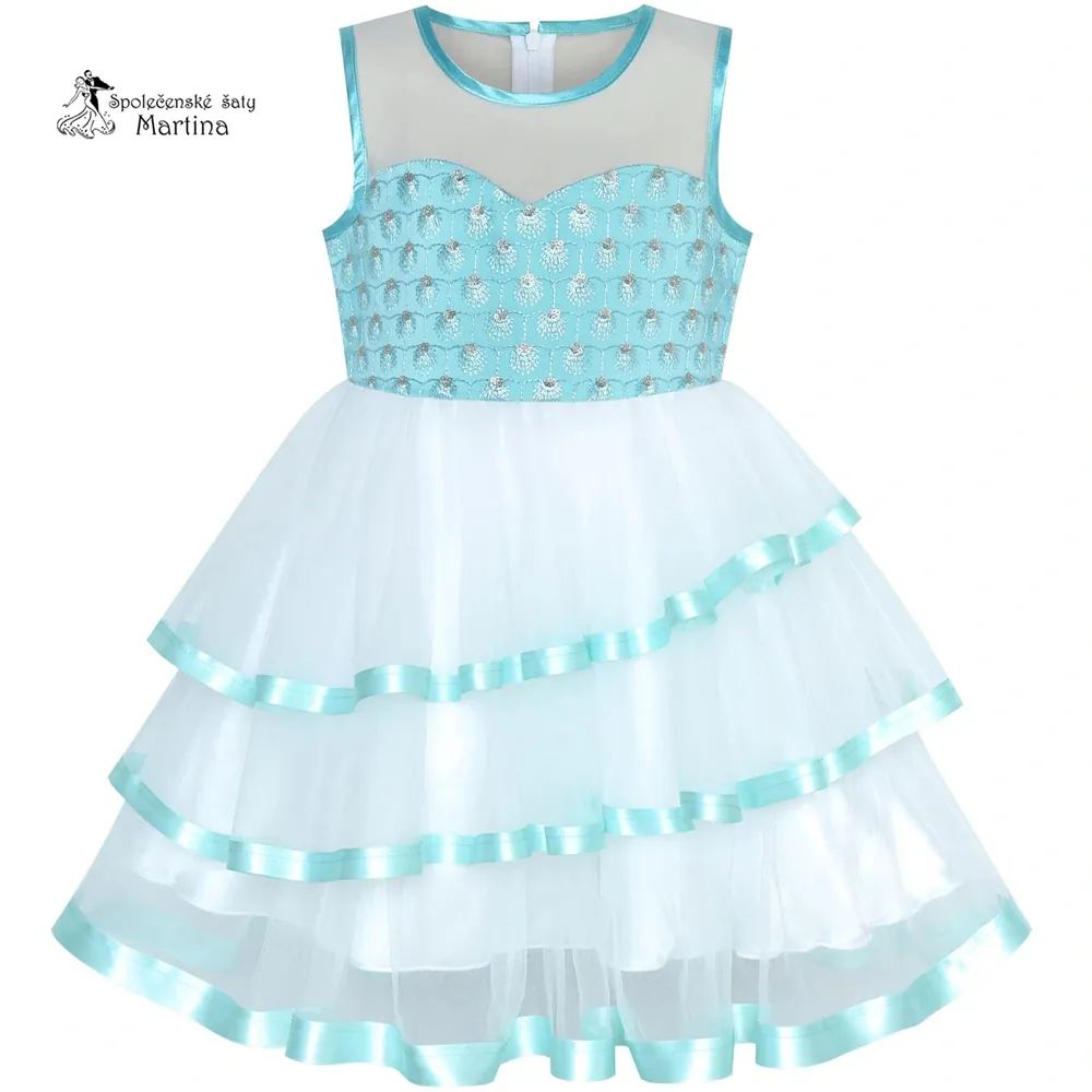 » krásné dívčí šatičky s aplikací motýlků v živůtku a na volánku sukně