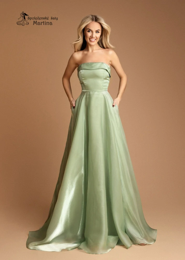 - Pastelově zelené společenské šaty "Nancy" z jemné organzy s korzetovým živůtkem