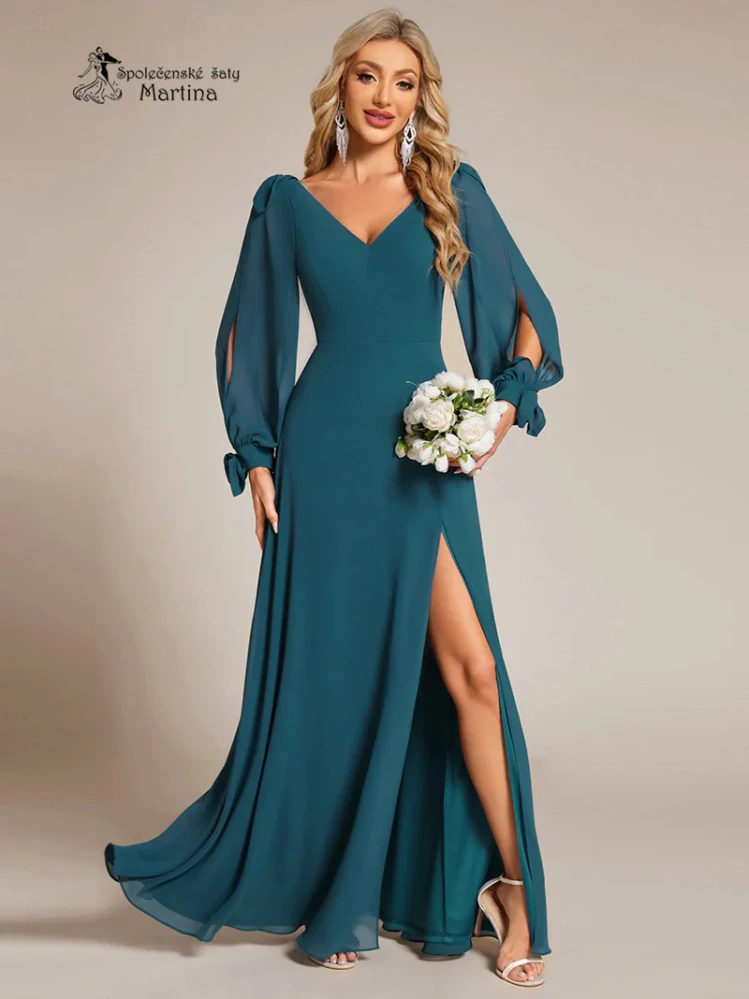 Petrolejové společenské šaty "Allison" s dlouhými rukávy - vel. 34