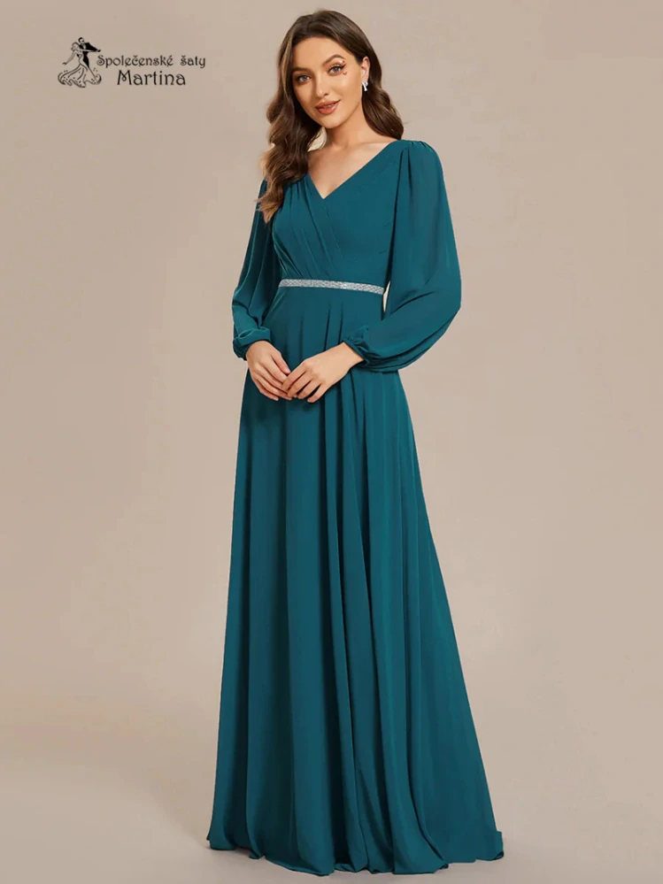 3. Petrolejové společenské šaty s dlouhými rukávy "Kerenza"