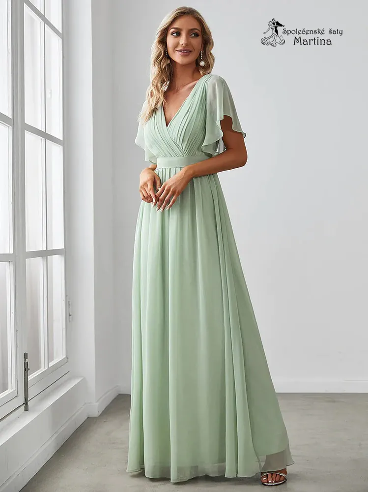 3. Pistáciové společenské šaty či pro svatebního hosta "Katherine" s volnými rukávy
