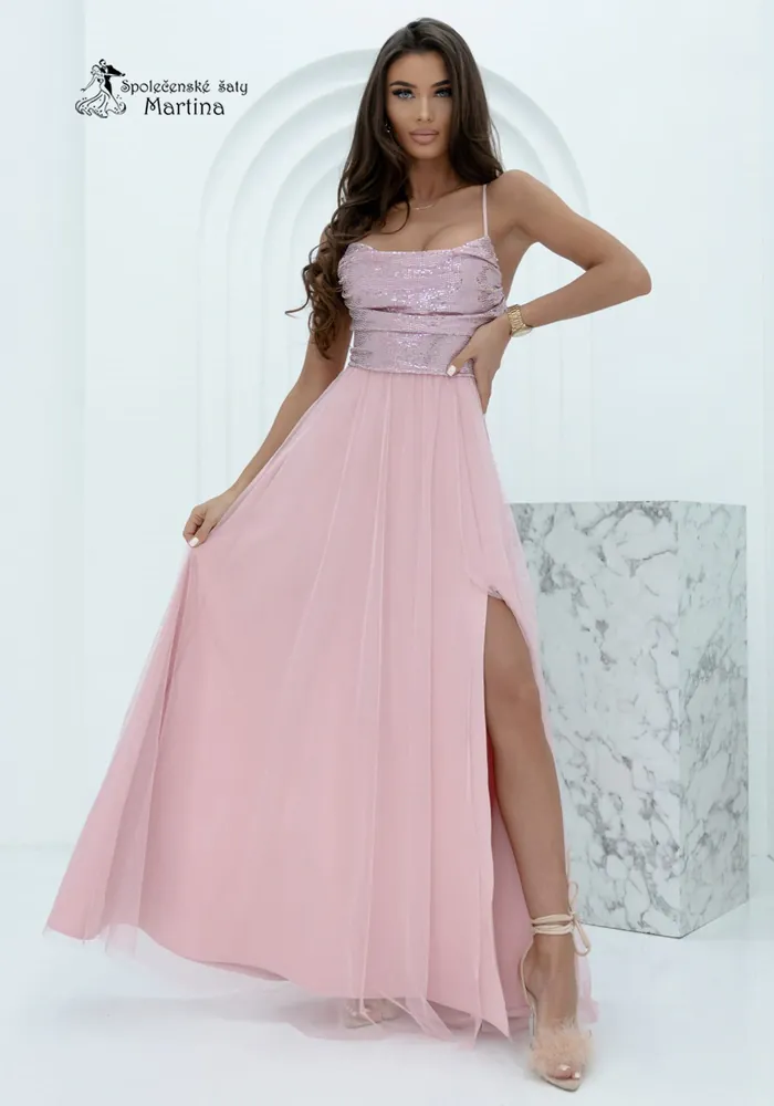 Pudrově růžové dlouhé šaty s flitrovým živůtkem a tylovou sukní "Syrenka" - vel. 382 440 Kč/ ks2 017 Kč bez DPH