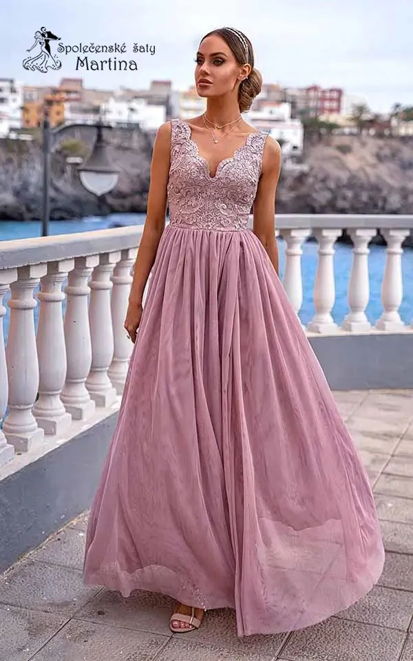 Pudrově růžové šaty "Chiara" s jemnou tylovou sukní a krajkovým živůtkem - vel. 402 690 Kč/ ks2 223 Kč bez DPH