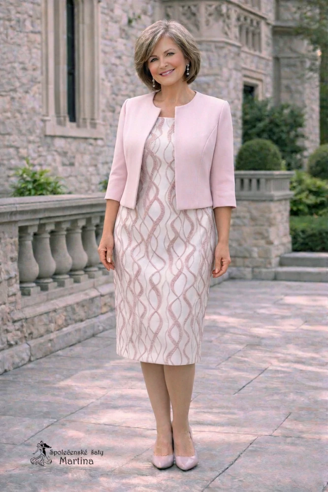 Pudrově růžový šatový komplet pro svatební maminky "Angelina"3 390 Kč/ ks2 802 Kč bez DPH