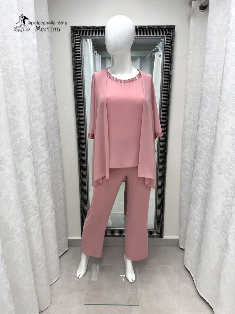 Pudrově růžový šifonový 3-dílný kalhotový komplet "Dagmara" - vel. 522 990 Kč/ ks2 471 Kč bez DPH