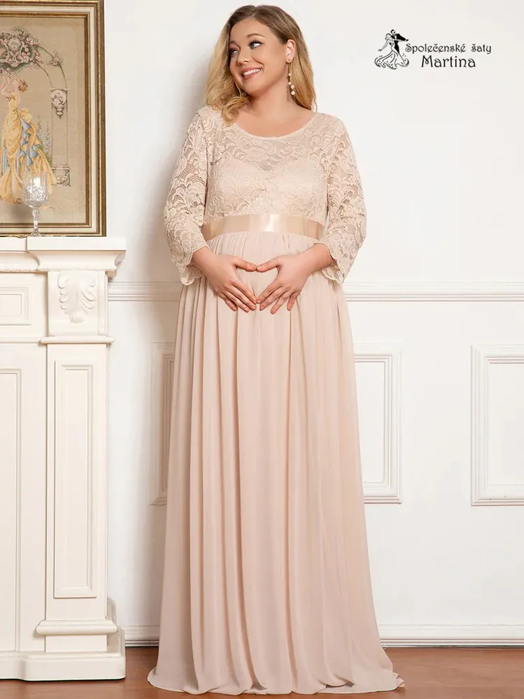 - Pudrové těhotenské šaty "Avila" s krajkovým živůtkem - vel. 52