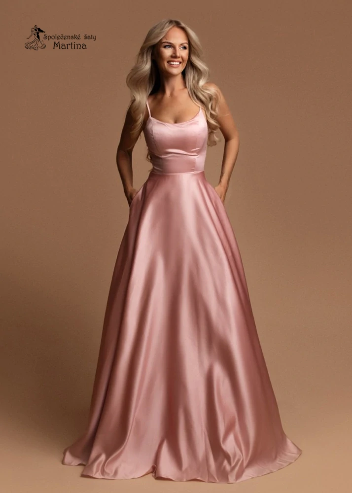 - Růžové saténové maturitní šaty "Helen" s kapsami