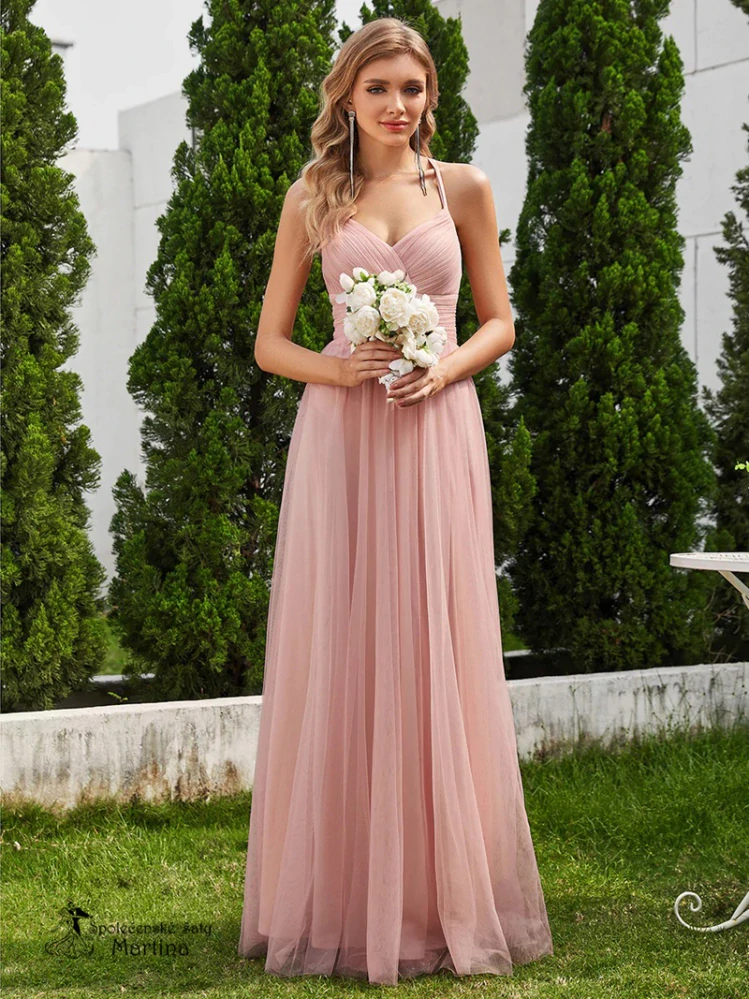 Růžové šaty s lehkou tylovou sukní a dvojitými tenkými ramínky "Leanna"