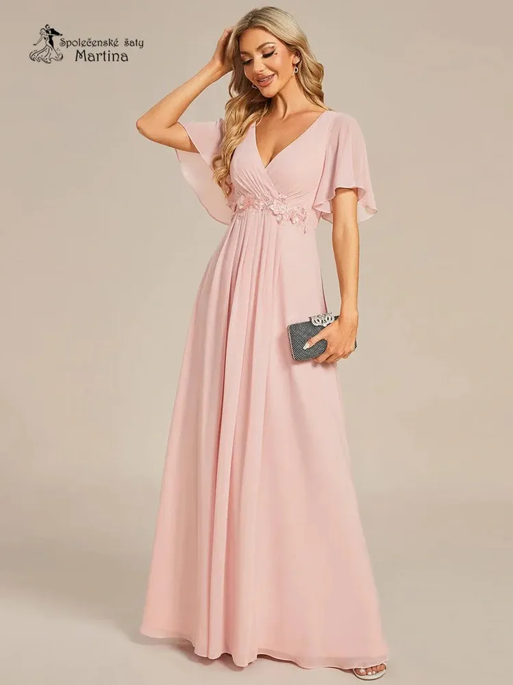 Růžové šifonové šaty "Pandora" s volným rukávem a aplikací v pase - vel. 342 590 Kč/ ks2 140 Kč bez DPH