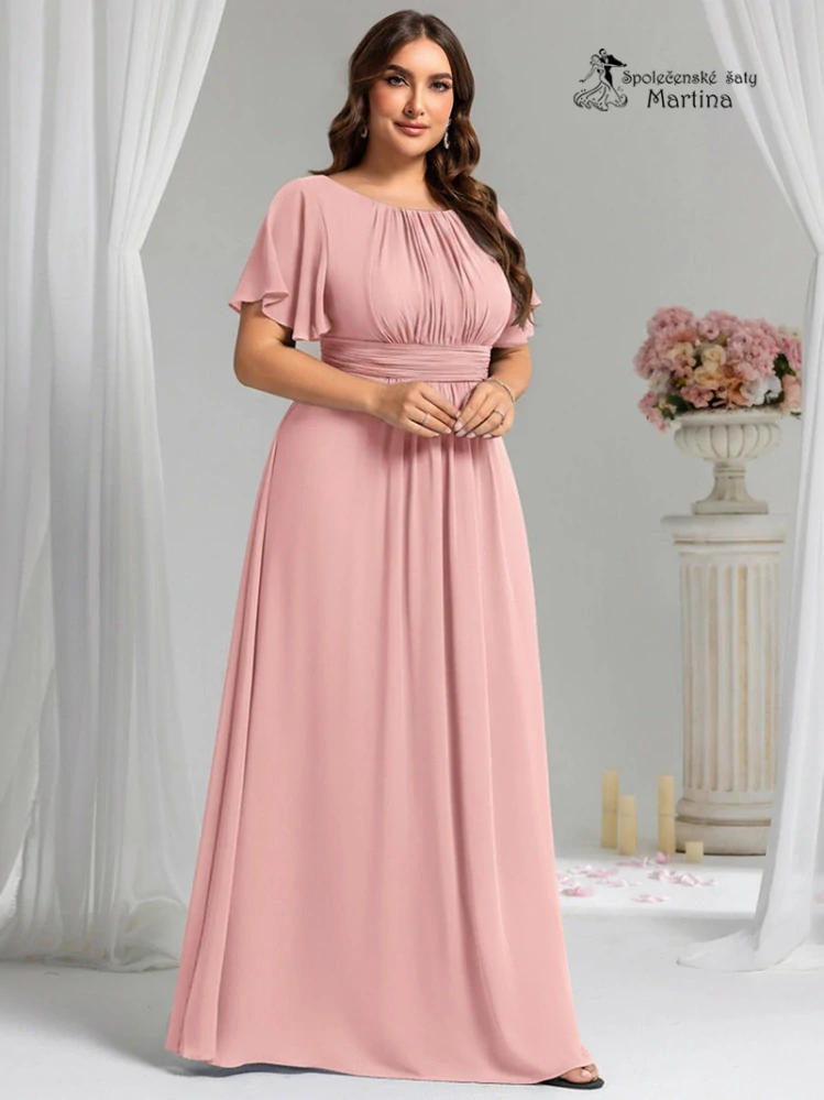 3. Růžové šifonové šaty s rukávkem a žabičkováním na zádech "Stela"