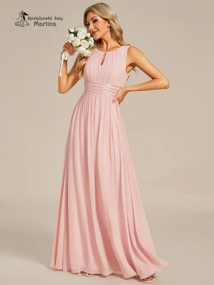 - Růžové společenské šaty "Cherry" s lodičkovým výstřihem