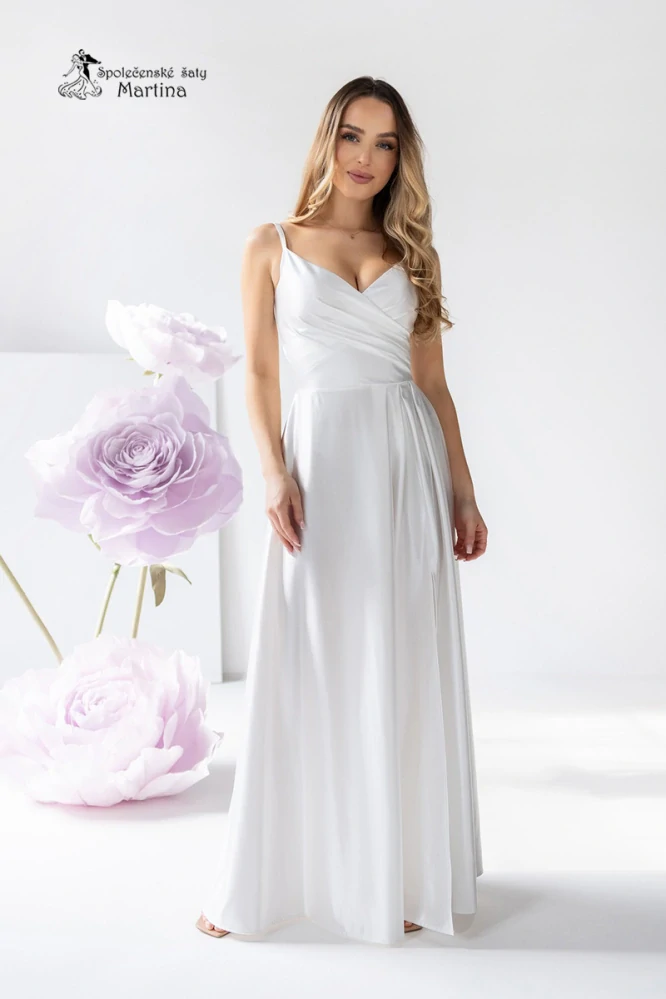 - Svatební saténové šaty "Stella" s rozparkem a překládaným živůtkem