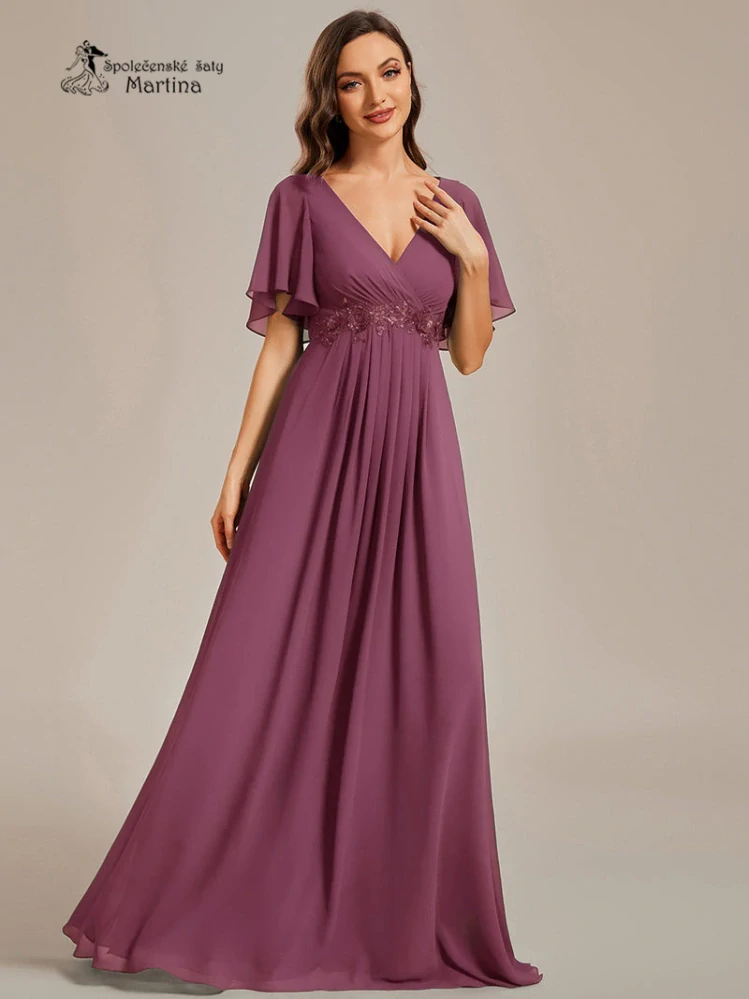 3. Šeříkové šifonové šaty "Pandora" s volným rukávem a aplikací v pase