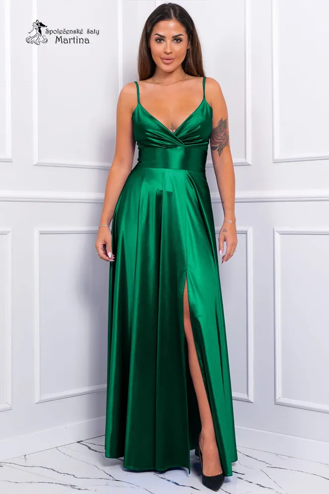 Lahvově zelené saténové společenské šaty "Lauryn" na tenká ramínka - vel. 382 190 Kč/ ks1 810 Kč bez DPH