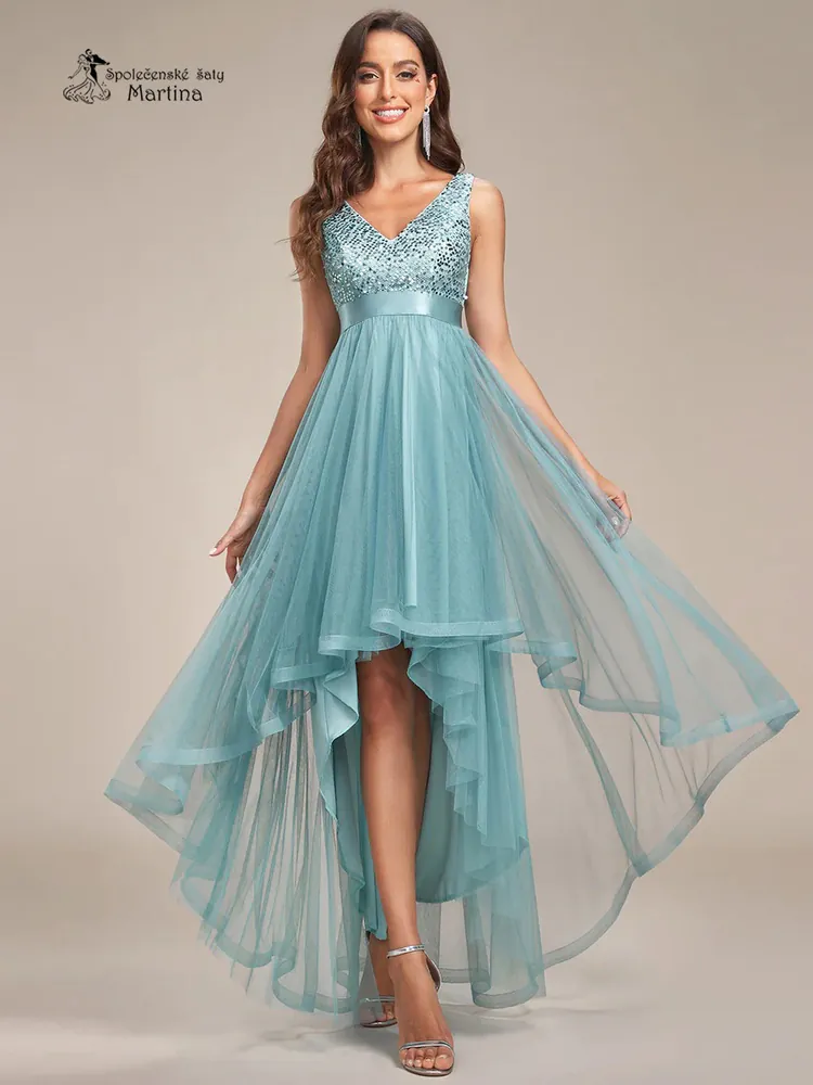 - Staromodré asymetrické tylové společenské šaty "Leslie" s flitrovým živůtkem