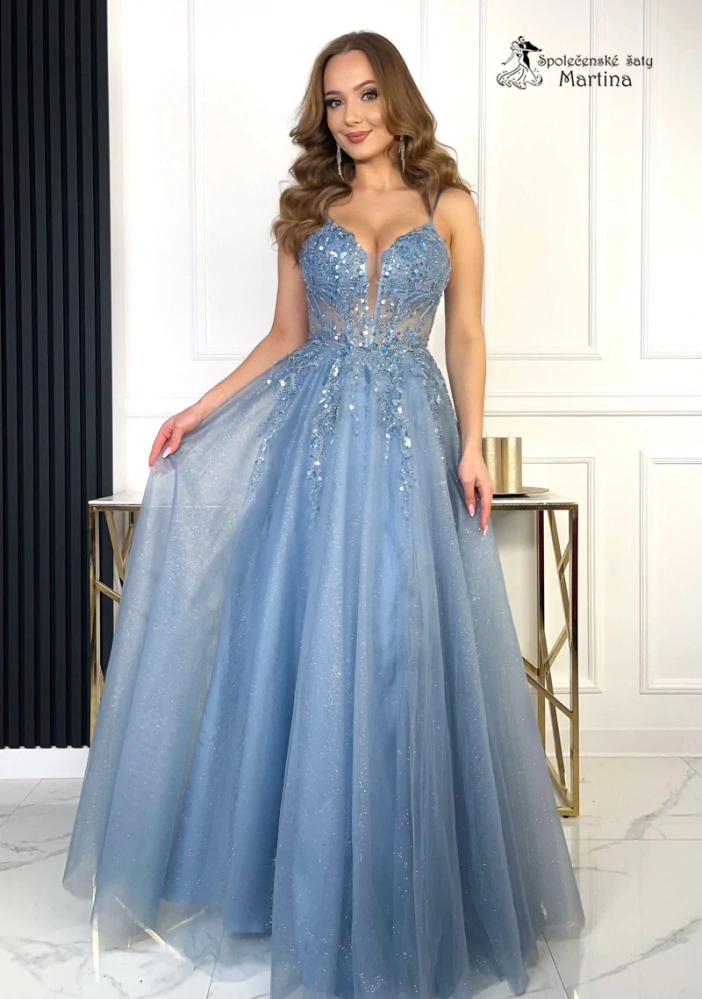 Staromodré tylové šaty "Hortenzie" s korálkovou výšivkou a jemným třpytem - vel. L4 090 Kč/ ks3 380 Kč bez DPH
