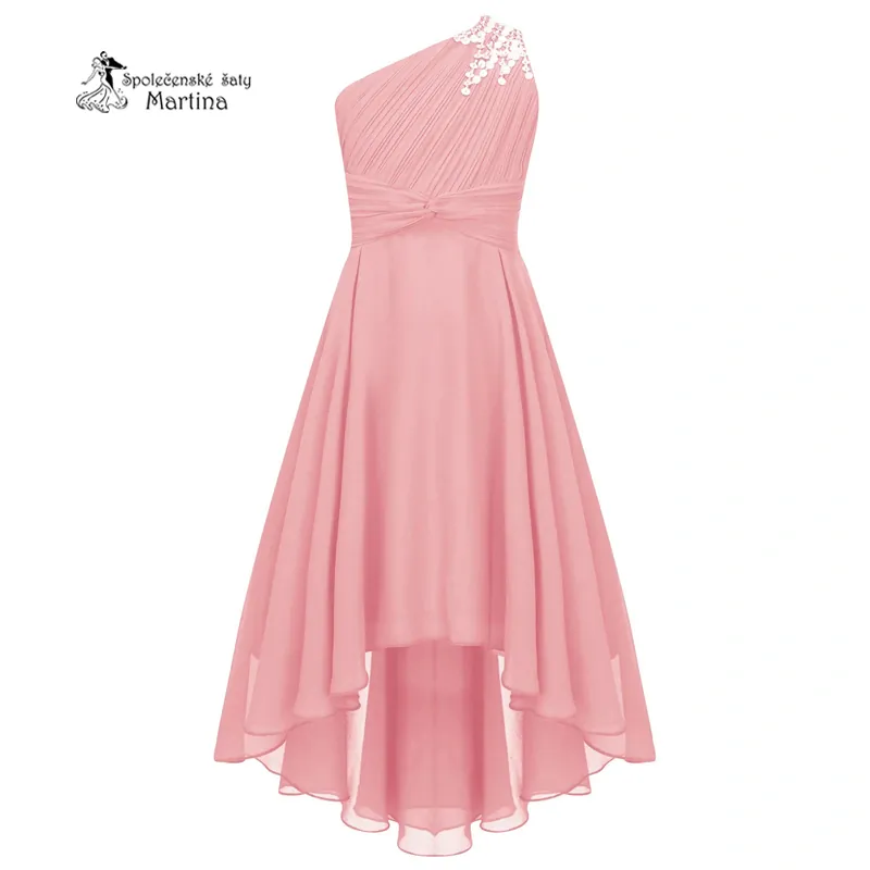 3. Starorůžové asymetrické dívčí šaty "Nikolka" na jedno rameno 6-16 let