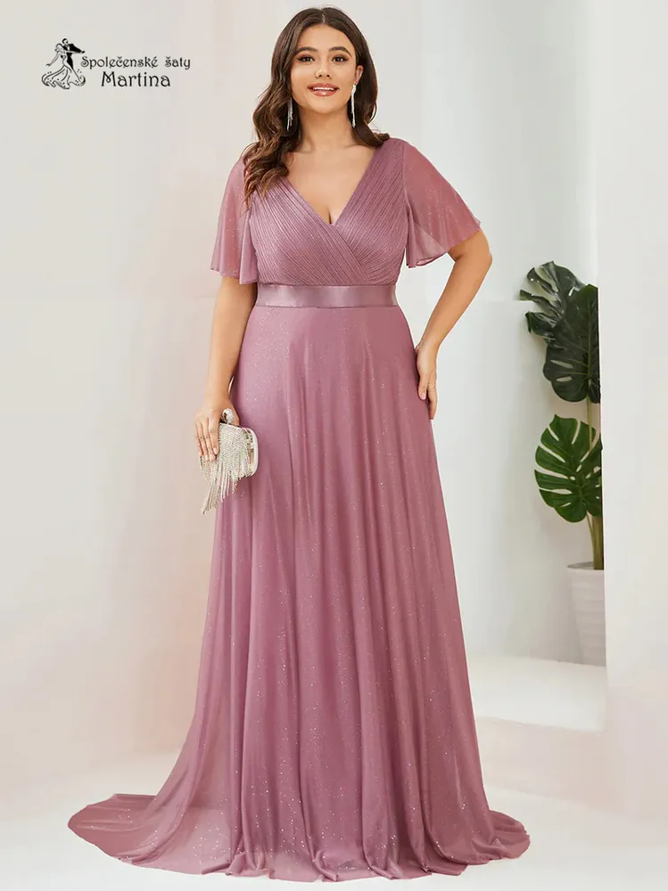 Starorůžové jemně třpytivé společenské šaty s volnými rukávy "Darien"