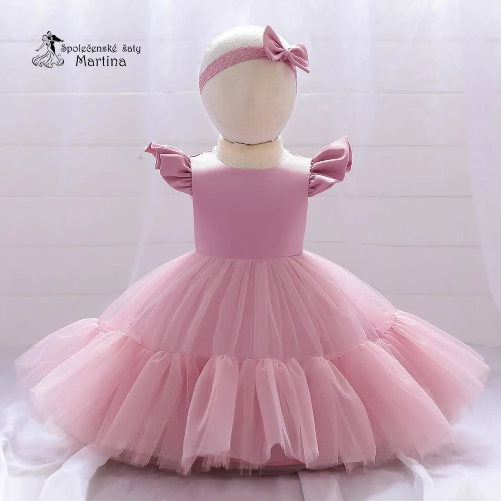 Starorůžové krátké tylovo-saténové šatičky "Andělka" - vel. 90
