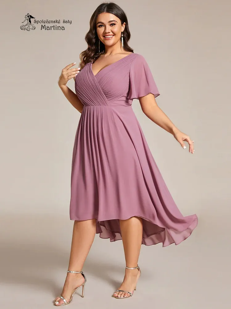 - Starorůžové midi asymetrické šifonové šaty s volným rukávem "Debra" - vel. 48