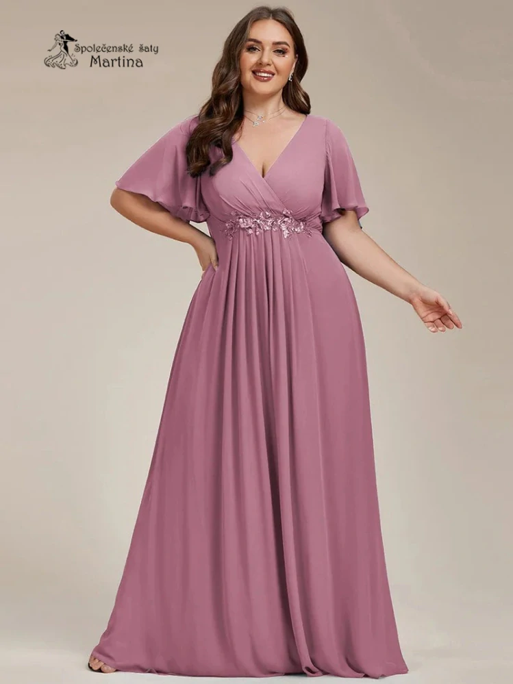 - Tmavě starorůžové šifonové šaty "Pandora" s volným rukávem a aplikací v pase