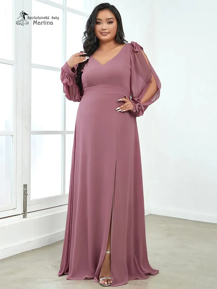 Starorůžové společenské šaty "Allison XXL" s dlouhými rukávy