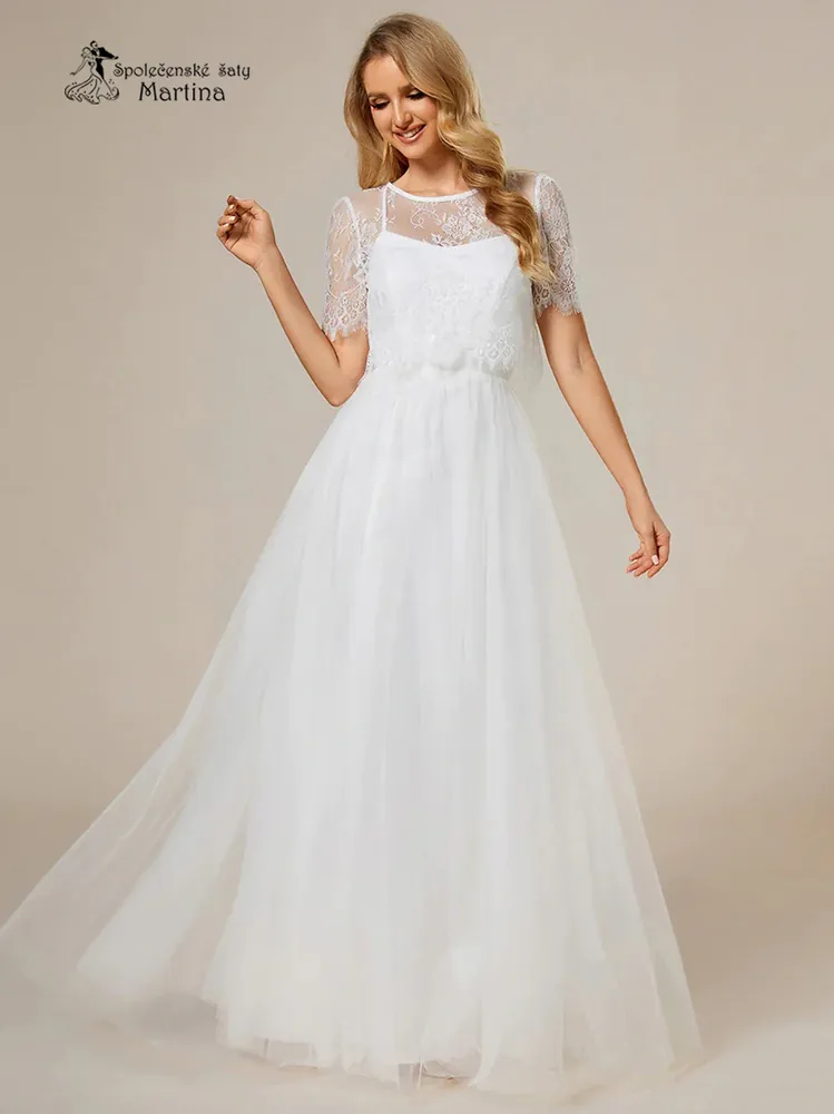 - Svatební šaty na tenká ramínka s krajkovým přehozem "Laverne"