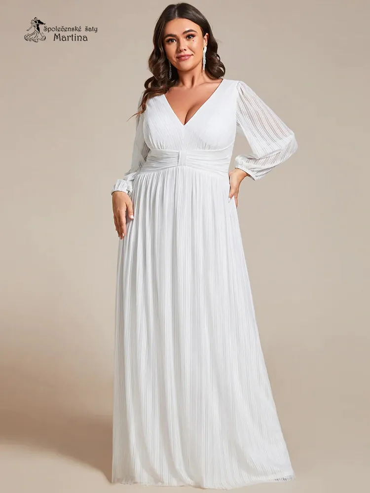 Svatební žebrované společenské šaty "Antony" s dlouhými rukávy - vel. 56