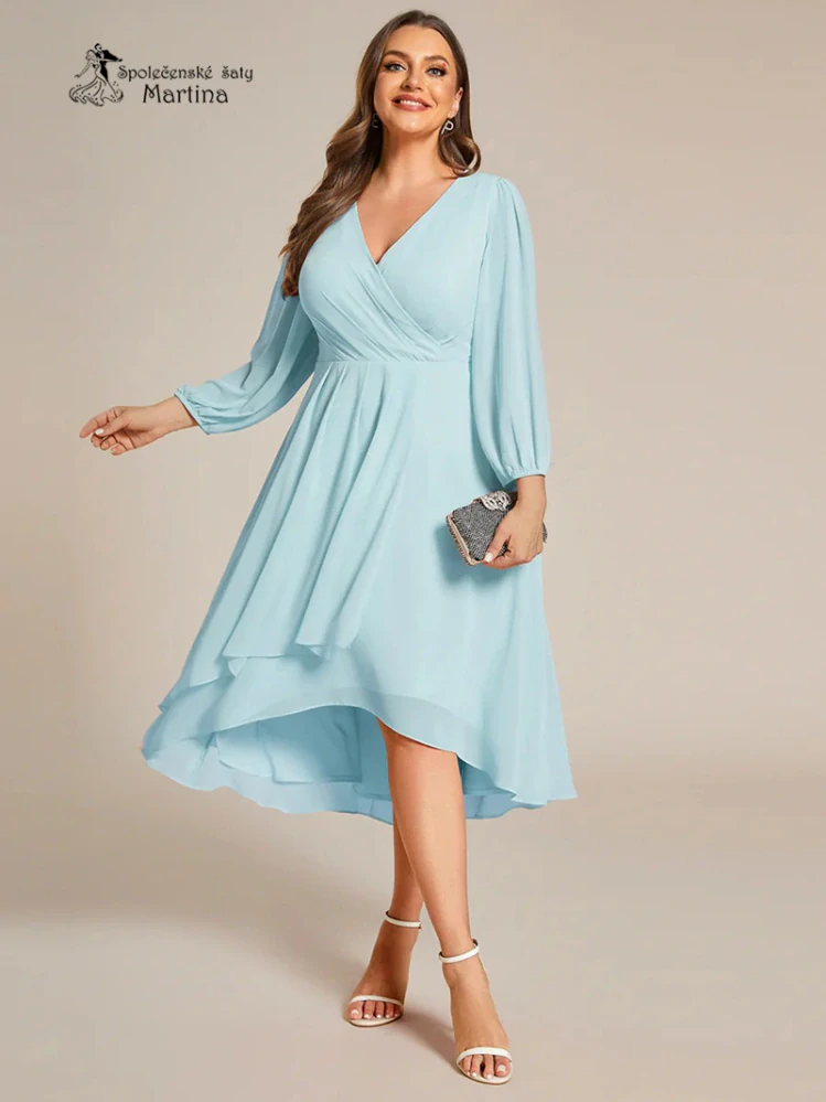 - Světle modré midi asymetrické šifonové šaty s 3/4 rukávem "Hirah" - vel. 50