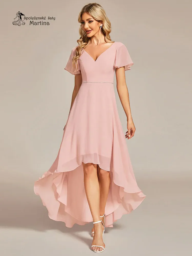 - Světle růžové asymetrické šaty s volným rukávem "Bailie" - vel. 36