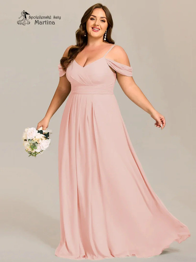 - Světle růžové šaty pro družičku či svatební hostku se spadenými rukávy "Emina"