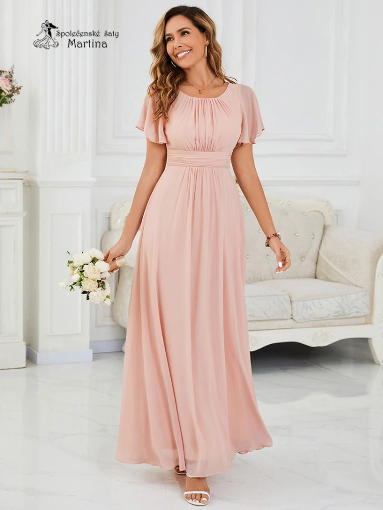 - Světle růžové šifonové šaty s rukávkem a žabičkováním na zádech "Stela"