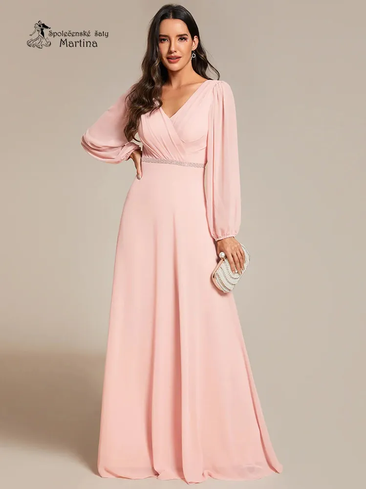 - Světle růžové společenské šaty s dlouhými rukávy "Kerenza"